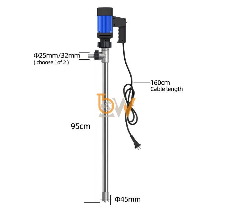 Bơm chìm hút thùng phuy nhiệt độ cao JDT-600W-G260 được thiết kế đặc biệt để làm việc trong môi trường có nhiệt độ lớn, nơi chất lỏng như dầu nóng, dung môi hoặc hóa chất có thể gây hư hỏng nhanh cho các thiết bị thông thường. Với cấu tạo tối ưu, JDT-600W-G260 xử lý chất lỏng nóng một cách an toàn, ổn định và hiệu quả.