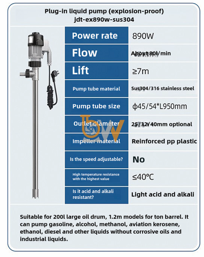 Tối ưu hóa chi phí vận hành cùng Máy bơm chất lỏng cắm trực tiếp chống cháy nổ JDT-EX890W-SUS304