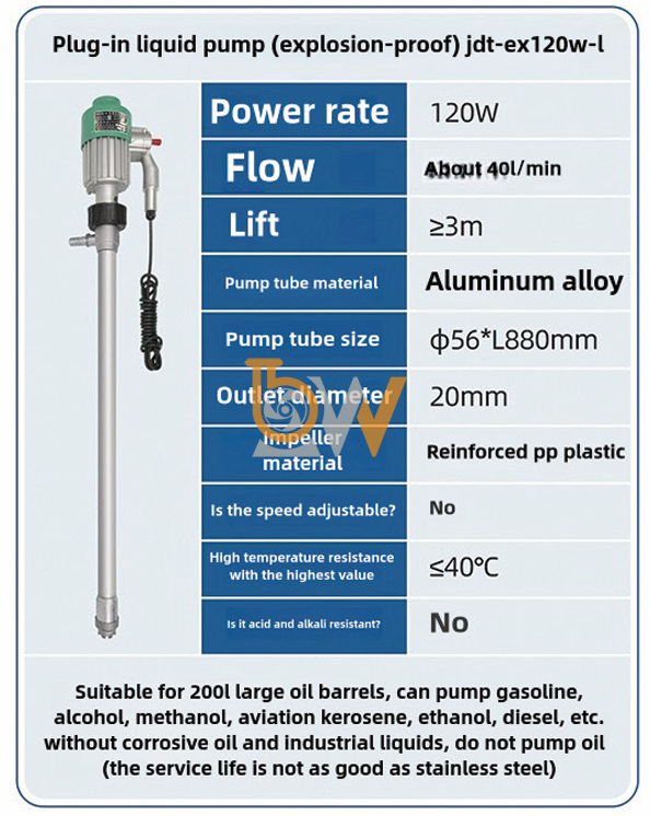 Máy bơm chất lỏng cầm tay chống cháy nổ JDT-EX120W-L có thể sử dụng cho xăng, ethanol, methanol, diesel…