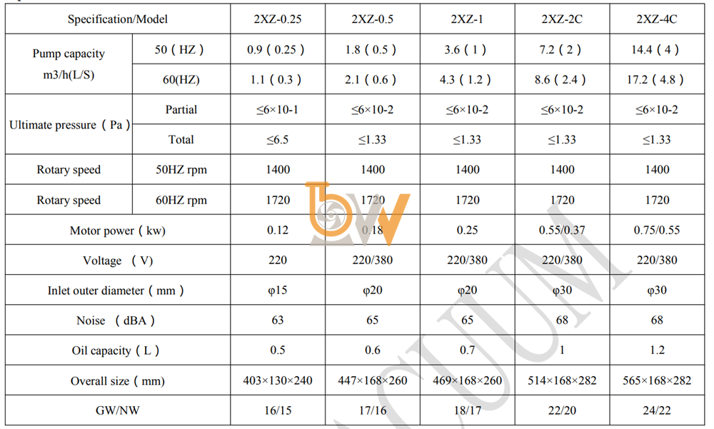 Model 2XZ-2 có thiết kế bơm hai cấp: