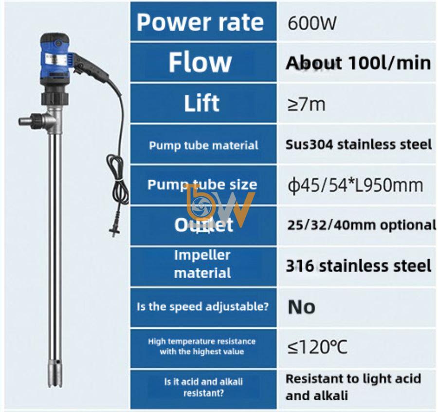 Bơm thùng phuy RPP JDT-G120-600W có ưu điểm: