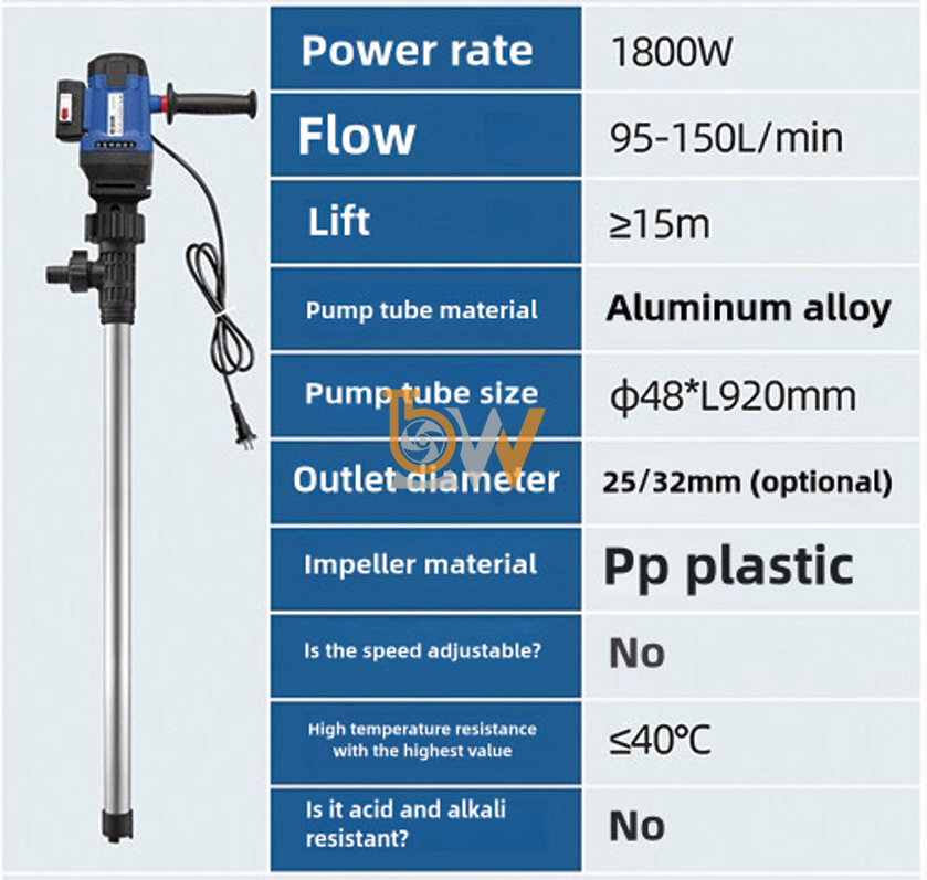 Ưu điểm về độ bền của bơm điện thùng phuy cao cấp JDT-1800W-L92 trong môi trường hóa chất