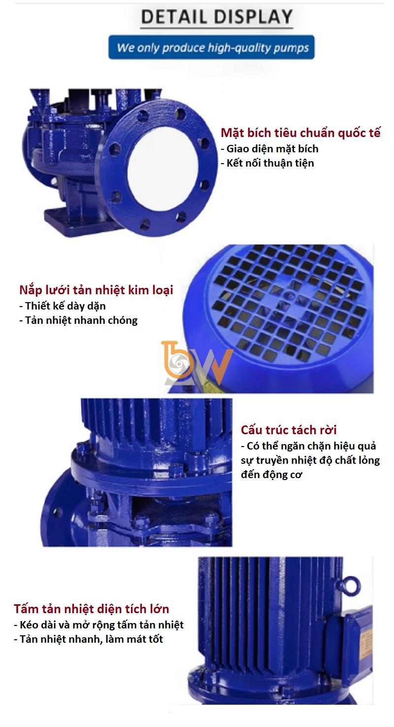 Động cơ được bố trí trực tiếp trên thân bơm, theo phương thẳng đứng